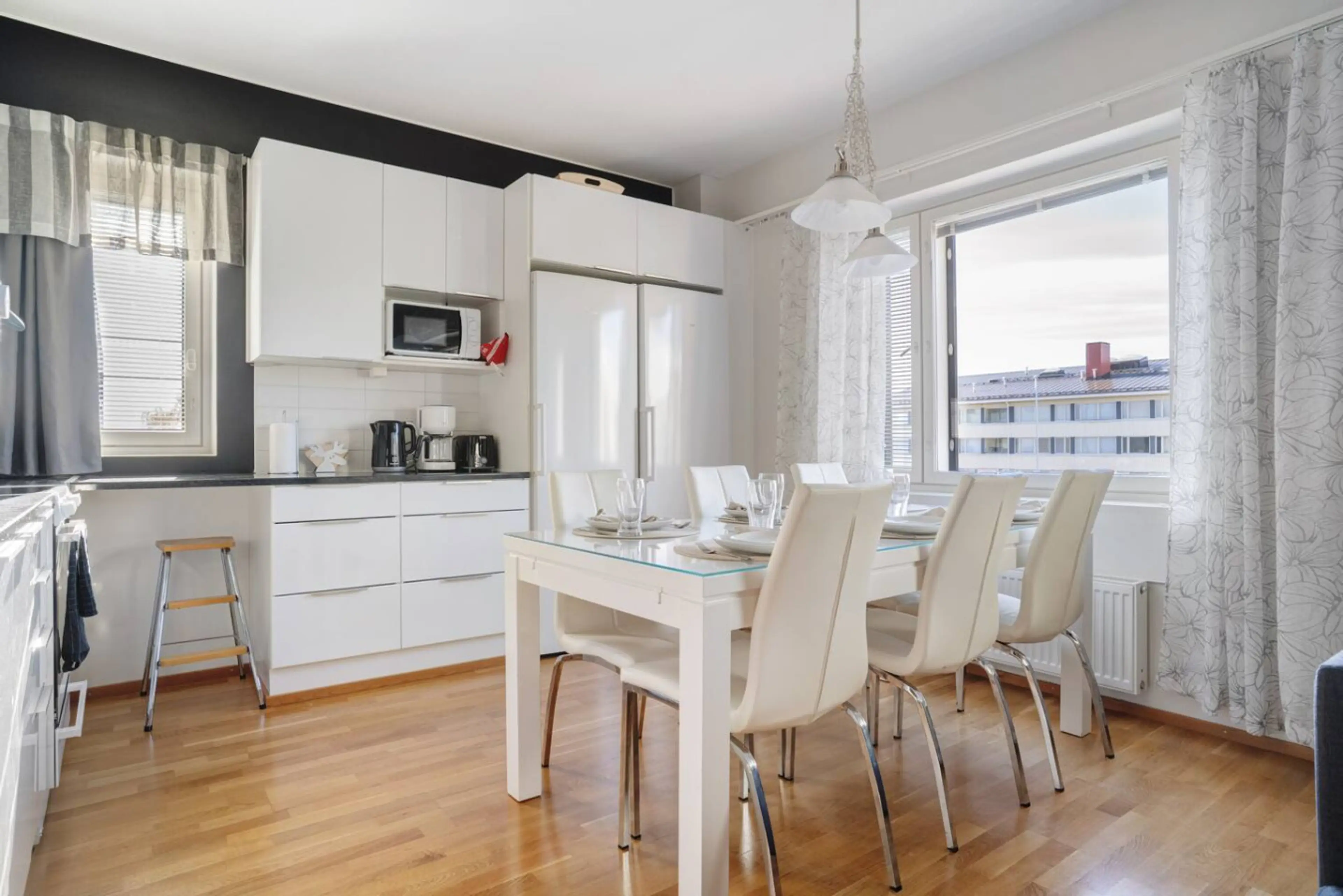 Welcome to Santa’s Luxury Suite! - Spacious two-bedroom apartment in the heart of Rovaniemi - Sleeps up to 8 guests (2 × 160 cm queen beds + 2 sofa beds) - Relax in your own private Finnish sauna - Smart TV and fast WiFi - Fully equipped kitchen — perfect for families and longer stays - Bed linens...