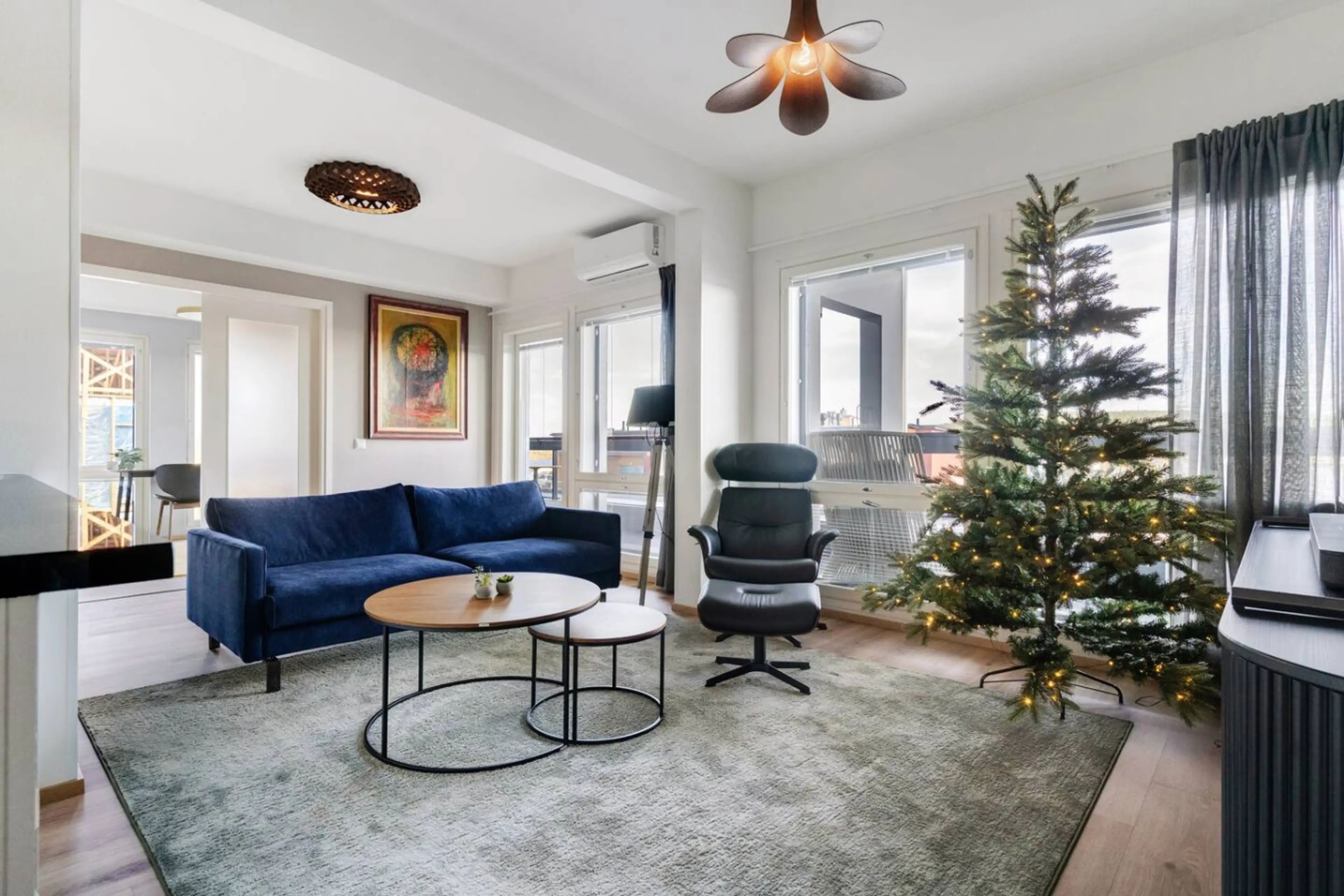 Welcome to Aurora Sky Penthouse! - Luxury penthouse in Rovaniemi city centre - Sleeps 6 guests (double bed + 2 singles + sofa bed) - 2 Smart TVs & high-speed WiFi for premium entertainment - Spacious balcony with city views - Private Finnish sauna & 3 showers for total relaxation - Modern design an...