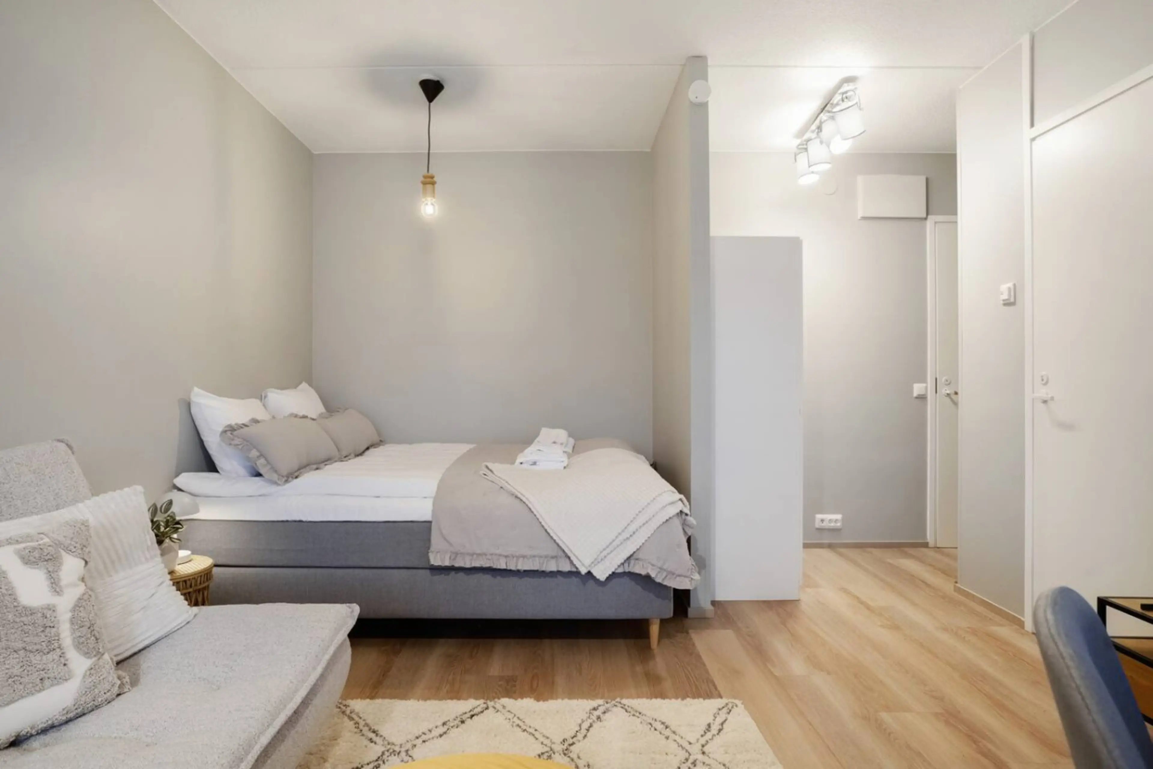- 160 cm double bed for a comfortable night’s sleep (2 guests) - Sofa bed for up to 2 additional guests - Bed linens and towels included for a hassle-free stay - Free Wi-Fi & Smart TV for entertainment and remote work - Private sauna — perfect for relaxing after a day in Lapland - Prime city-centre ...